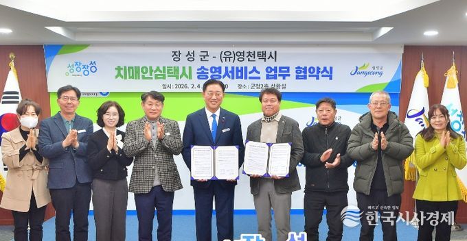 군은 4일 군청 상황실에서 (유)영천택시와 ‘치매안심택시 송영 서비스’ 운영을 위한 업무 협약을 체결했다. 김한종 장성군수, 정귀우 (유)영천택시 대표 등 관계자 10여 명이 참석했다.