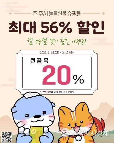 한편, 시는 농특산물 쇼핑몰인 ‘진주드림쇼핑몰’과 네이버 스마트스토어 ‘진주시장’에서 설 명절을 맞아 오는 10일까지 설맞이 할인 행사를 진행하고 있다.