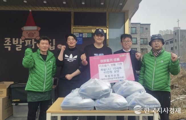전달된 족발세트는 당일 조리한 신선한 족발과 함께 쌈채소, 막국수 등 든든한 한 끼를 즐길 수 있게 구성됐으며, 지역 내 취약계층 10가구에 전달됐다.