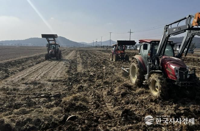 한국시사경제 권충현 기자 | 영암군이 5일 학산면 천해마을에서 ‘왕우렁이 피해 예방 논 깊이갈이 시연회’를 개최했다.