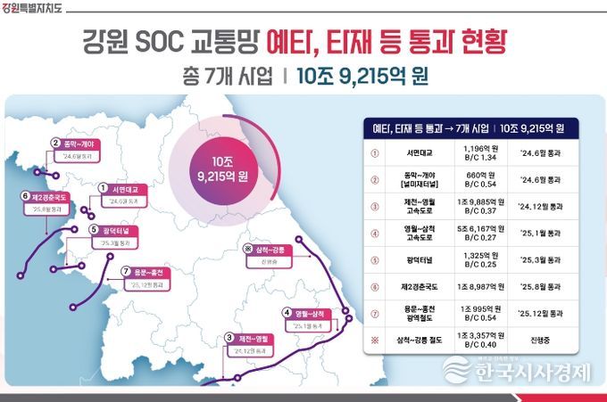 한편, 민선 8기 들어 도는 예비타당성조사와 타당성 재조사를 통해 총 7개 SOC 교통망사업, 10조 9,215억 원 규모를 확보하는 성과를 거뒀다.
