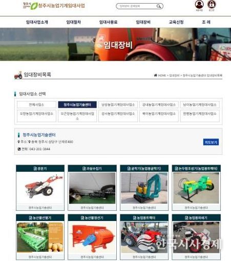 농기계 임대사업과 온라인 예약 관련 문의는 청주시농업기술센터 농업기계팀으로 하면 된다.