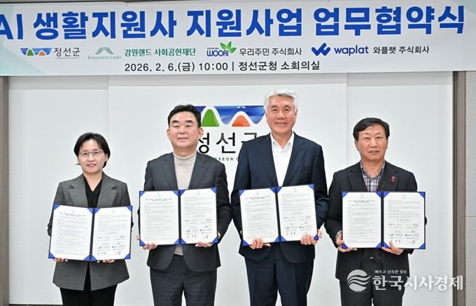 이번 협약식은 2월 6일 정선군청 소회의실에서 열렸으며, 정선군을 비롯해 강원랜드 사회공헌재단, 우리주민 주식회사, 와플랫 주식회사가 참석해 AI 기반 돌봄 서비스 제공과 통합돌봄 체계 구축을 위한 협력에 뜻을 모았다.