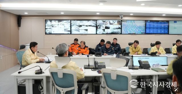 한국시사경제 노승선 기자 | 제주특별자치도가 8일 오전 10시 도청 재난상황실에서 오영훈 지사 주재로 대설·한파 재난대책회의를 열고 도민과 관광객 안전 확보를 최우선으로 피해 최소화에 총력 대응하고 있다.