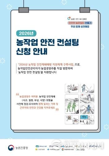 이번 사업은 ‘2026년 농작업 안전재해 예방 지원체계 구축사업’의 하나로 추진되며, 농작업 안전관리자가 농업 경영주를 직접 방문해 농작업 위험성 평가와 안전보건 관리 체계 구축을 지원하는 프로그램이다.