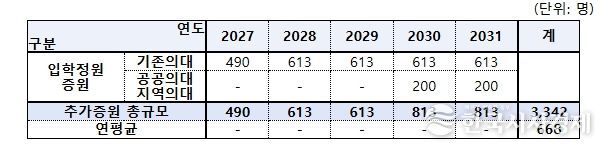 27년 490명, 28년부터 29년까지 613명, 2030년 이후 813명 단계적 증원