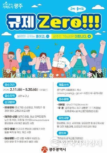 광주광역시는 ‘불합리한 규제 집중발굴, 규제 제로’를 목표로 11일부터 5월 20일까지 100일 동안 불합리한 규제 집중발굴 기간을 운영한다.