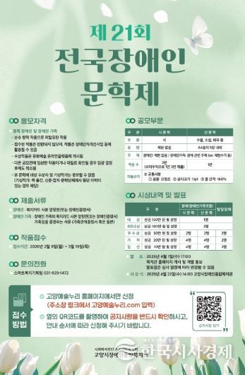 한국시사경제 문화팀 | 고양시장애인종합복지관은 3월 19일까지 전국의 장애인 및 장애인 가족을 대상으로 ‘제21회 전국장애인문학제’ 작품 접수를 진행한다.