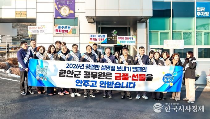 한국시사경제 경남취재본부 | 함안군은 다가오는 설 명절을 맞아 공정하고 청렴한 사회 문화 조성을 위해 2월 10일부터 12일까지 3일간 ‘설 명절 선물 안주고 안받기’ 및 ‘음주운전 근절’ 캠페인을 실시한다고 밝혔다.