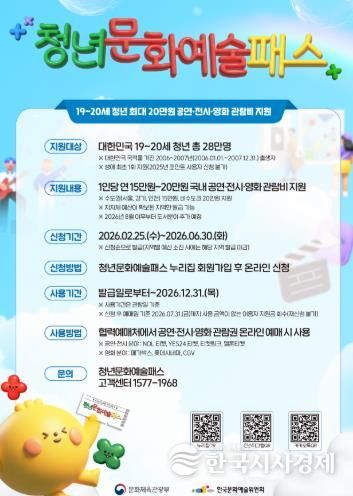‘2026 청년문화예술패스’는 19~20세 청년에게 공연·전시·영화 예매에 사용할 수 있는 포인트를 지원하는 사업이다.