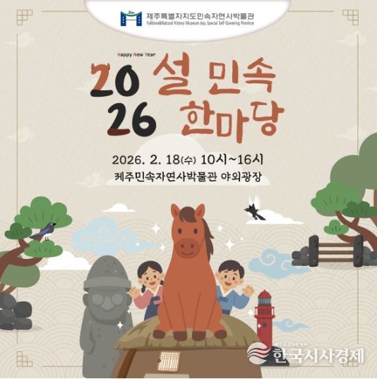 한국시사경제 노승선 기자 | 제주민속자연사박물관은 2026년 병오년 설 명절을 맞아 오는 18일 박물관 야외광장에서 ‘설 민속한마당’을 개최한다고 밝혔다.