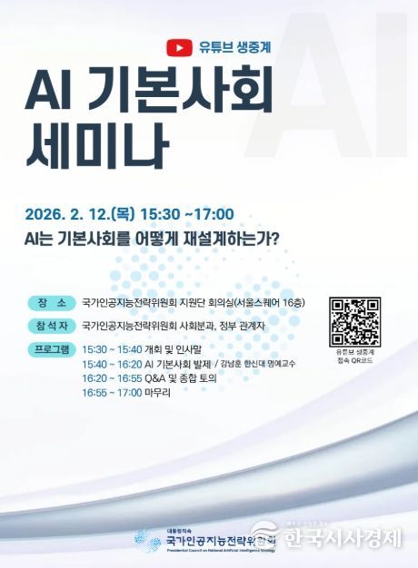 한국시사경제 디지털 뉴스팀 | 국가인공지능전략위원회는 2월 12일 오후 3시 30분부터 AI 기본사회 세미나를 개최한다. 이번 세미나는 AI 기술 확산이 노동ㆍ복지ㆍ분배ㆍ사회안전망 등 경제ㆍ사회 정책 전반에 미치는 영향을 종합적으로 살펴보고, AI 시대에 부합하는 기본사회 제도 설계 방향에 대한 시사점을 도출하기 위해 마련됐다. 특히 AI 기술의 확산에 따라 부와 생산수단이 특정 주체에 집중됨과 동시에 고용ㆍ소득 양극화를 포함한 구조적 변화가 예상되는 상황에서, 기본사회 정책이 어떤 역할과 방향성을 갖고 추진되어야 하는지에 대한 심도 있는 논의가 진행될 예정이다.