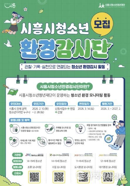 한국시사경제 경기취재본부 | 시흥시청소년청년재단은 청소년이 지역 환경문제를 직접 관찰하고 기록하며, 이를 실천으로 연결하는 ‘제3기 시흥시청소년환경감시단’을 오는 2월 28일까지 모집한다.