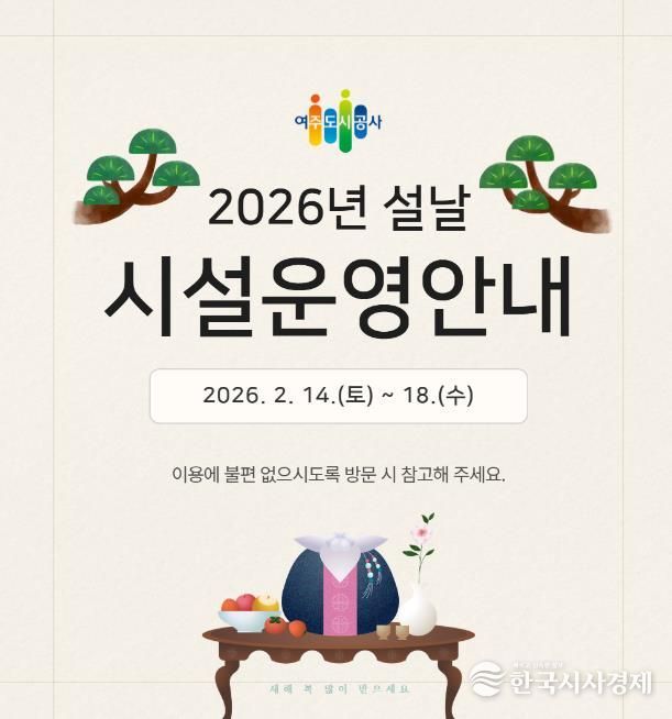 한국시사경제 기동취재팀 | 여주도시공사가 다가오는 2026년 설 연휴를 맞아 시민과 귀성객들이 안전하고 편안한 명절을 보낼 수 있도록 주요 시설 운영시간 조정 및 특별 서비스를 시행한다고 밝혔다.