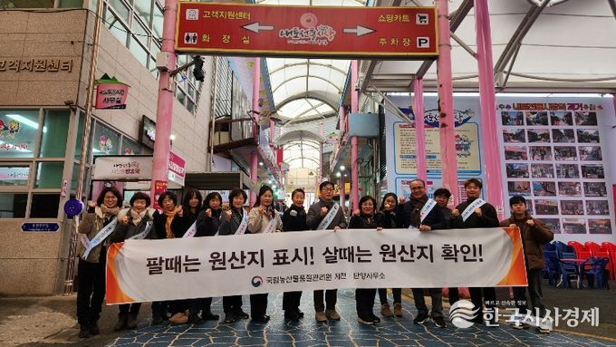 한국시사경제 충북취재본부 | 국립농산물품질관리원충북지원 제천·단양사무소(소장 임창섭)는 2026.2.5. 제천내토시장, 중앙시장, 동문시장 등에서 설 명절 수요가 급증하는 농.축산물 선물용품, 제수용품, 지역 유명특산품의 올바른 원산지 표시 유도를 위해 전통시장에서 홍보 캠페인을 실시했다.