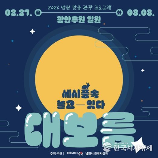 한국시사경제 윤경수 기자 | 남원시는 정월대보름을 맞아 전통 세시풍속을 현대적으로 재해석한 체험형 문화행사 『세시풍속 놀고-잇다_대보름』을 오는 2월 27일부터 3월 3일까지 5일간 광한루원 일원에서 운영한다고 밝혔다.