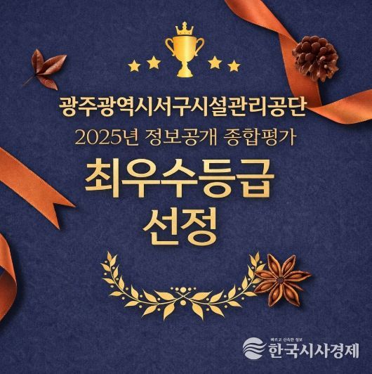 한국시사경제 광주취재본부 | 광주광역시서구시설관리공단이 행정안전부 주관 2025년 정보공개 종합평가에서 최고 등급인 ‘최우수’기관으로 선정됐다.