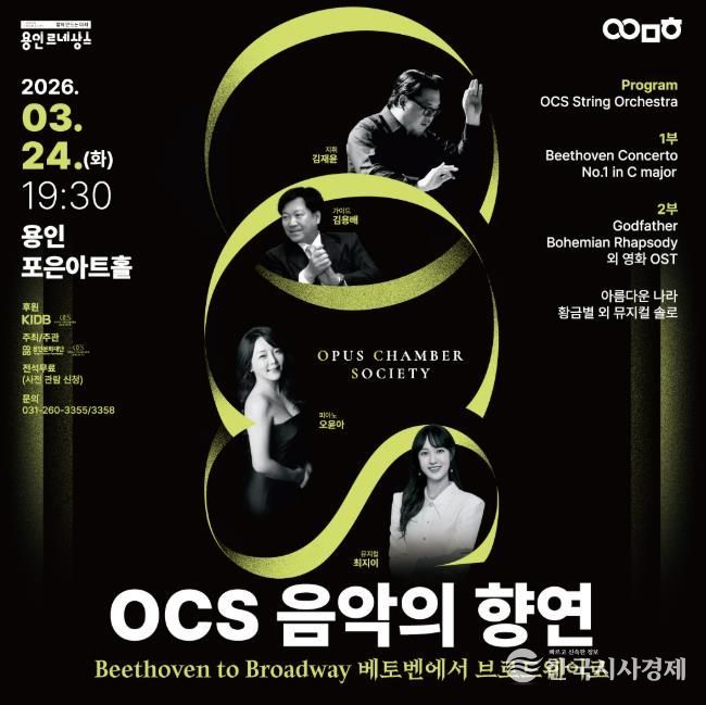 한국시사경제 이정이 기자 | 용인문화재단은 오는 3월 24일 용인포은아트홀에서 오퍼스 체임버 소사이어티(Opus Chamber Society, 이하 OCS)와 공동으로 'OCS 음악의 향연, Beethoven to Broadway' 공연을 개최한다.