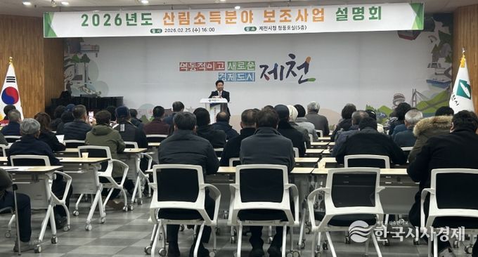 한국시사경제 충북취재본부 | 제천시는 지난 25일 시청 대회의실에서 임업인 경쟁력 강화를 위해 ‘2026년 산림소득분야 보조사업 주민설명회’를 개최했다.
