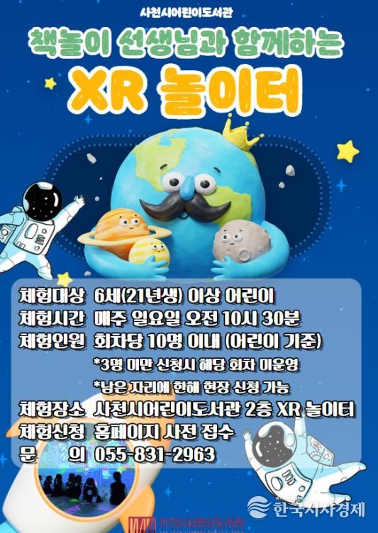한국시사경제 윤광희 기자 | 사천시어린이도서관은 관내 미취학 아동과 초등학생의 독서 흥미를 높이고 다양한 체험 기회를 제공하기 위해 3월부터 12월까지 '책놀이 선생님과 함께하는 XR 놀이터'를 운영한다.