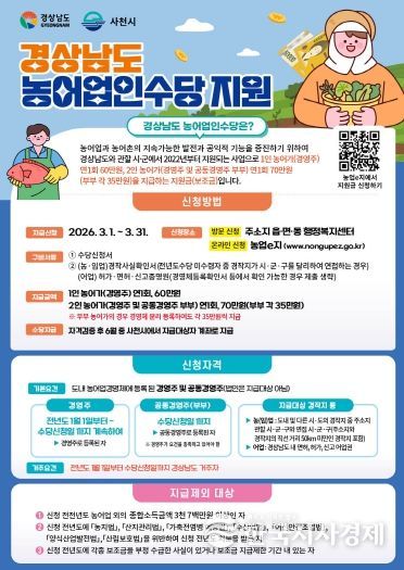 신청은 주소지 읍·면·동 행정복지센터를 방문하거나 경남도 '농업e지' 온라인 플랫폼에서 가능하다.