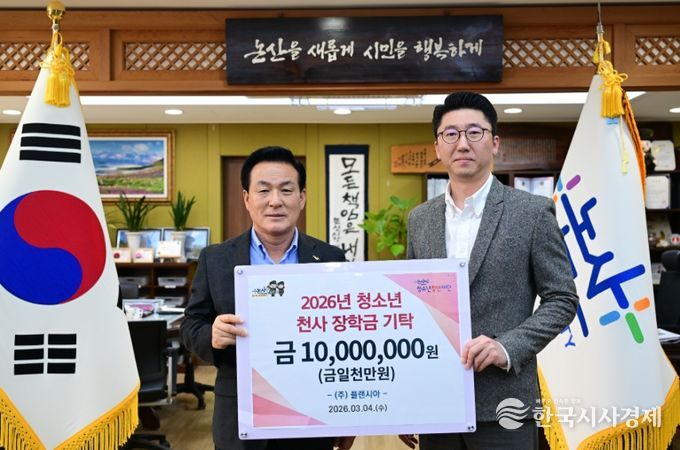 한국시사경제 김태훈 기자 | 논산시청소년청년재단은 지난 4일 ‘㈜플랜시아’가 지역 청소년을 위한 천사 장학금 1천만 원을 기탁했다고 전했다.