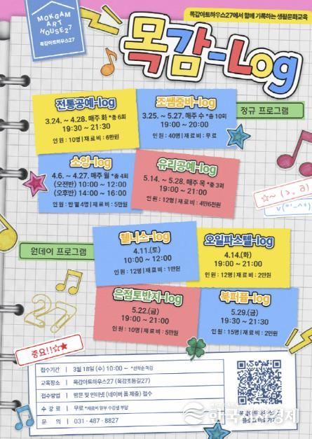 한국시사경제 경기취재본부 | 시흥시는 목감아트하우스27에서 운영하는 상반기 생활문화교육 ‘목감-로그(log)’ 참여자를 모집한다.