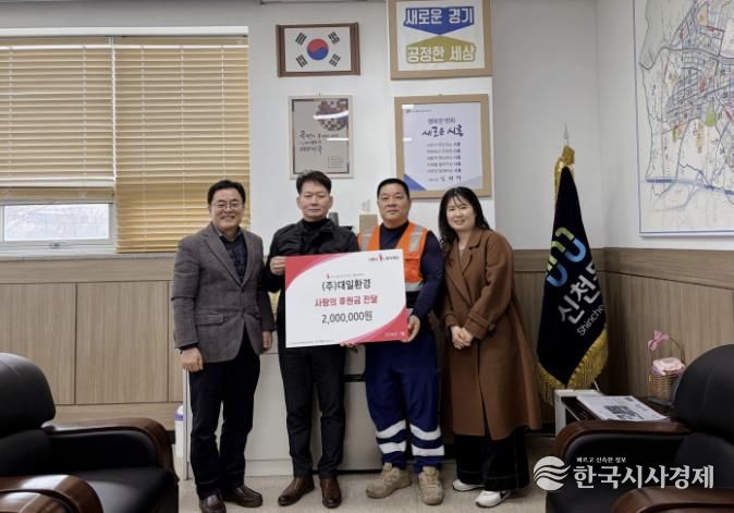 한국시사경제 경기취재본부 | 시흥시 신천동 행정복지센터는 지난 3월 5일 ㈜대일환경으로부터 취약계층 학생 교육비 지원을 위한 후원금 200만 원을 전달받았다.