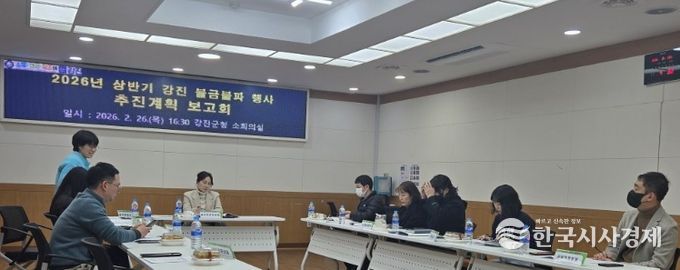 강진군은 지난 2월 26일 군청 소회의실에서 행사 련부서 회의를 열었다.