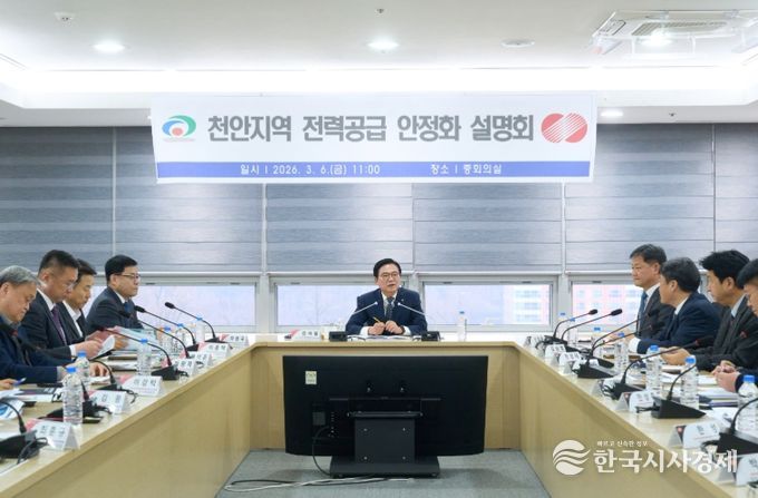 한국시사경제 충남취재본부 | 천안시는 6일 시청 중회의실에서 한국전력공사 대전세종충남본부와 함께 ‘천안지역 전력공급 안정화를 위한 설명회’를 개최하고 중장기 전력 인프라 확충 방안을 논의했다.