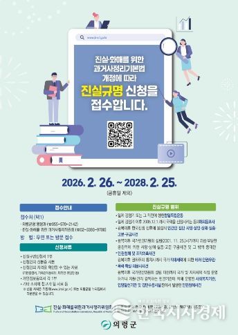 한국시사경제 윤광희 기자 | 의령군은 '진실·화해를 위한 과거사정리 기본법' 시행에 따라 2026년 2월 26일부터 과거사 진실규명 신청을 받고 있다고 밝혔다.