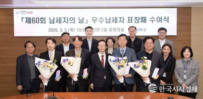 한국시사경제 김숙영 기자 | 부산 사하구는 ‘제60회 납세자의 날’을 맞아 지난 5일 '2026년 사하구 우수납세자 표창패 수여식'을 개최하여 어려운 여건에서도 성실하게 지방세를 납부한 우수납세자에게 감사의 마음을 전했다.