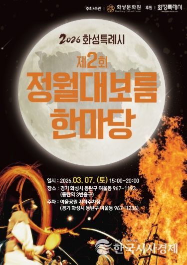 한국시사경제 이정이 기자 | ‘2026년 화성특례시 제2회 정월대보름 한마당’이 오는 3월 7일 오후 3시부터 8시까지 동탄역 3번 출구 앞 광장에서 열린다.