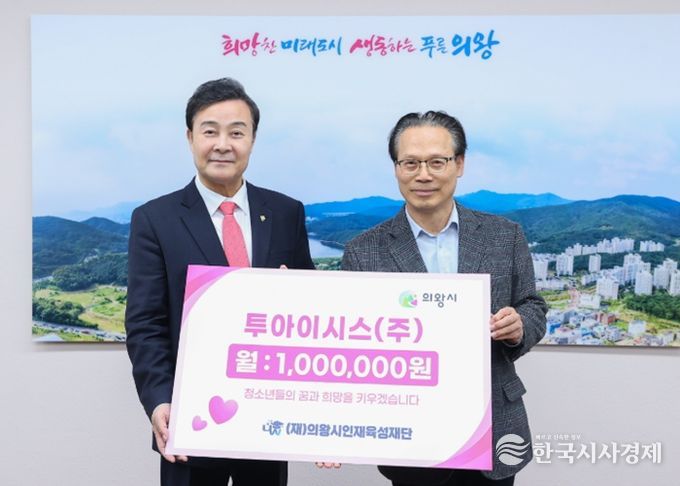 한국시사경제 권충현 기자 | 의왕시인재육성재단은 ㈜투아이시스가 의왕시 인재 육성 및 교육 발전 지원을 위한 장학금으로 매월 100만원을 재단에 정기 후원하기로 했다고 밝혔다.