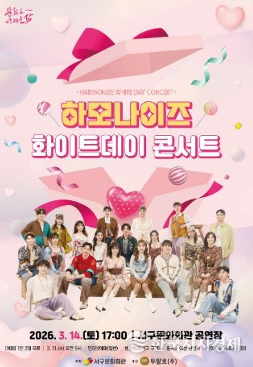 이번 공연은 지난 2023년 서구문화회관에서 개최한‘하모나이즈 콘서트 : 더 쇼 콰이어’공연의 뜨거운 성원에 힘입어 3월 14일 화이트데이 콘셉트에 맞춘 하모나이즈만의 독창적인 합창 편곡과 특색있는 스테이지로 구성한 로맨틱 콘서트를 마련해 다시 서구를 찾아온다.