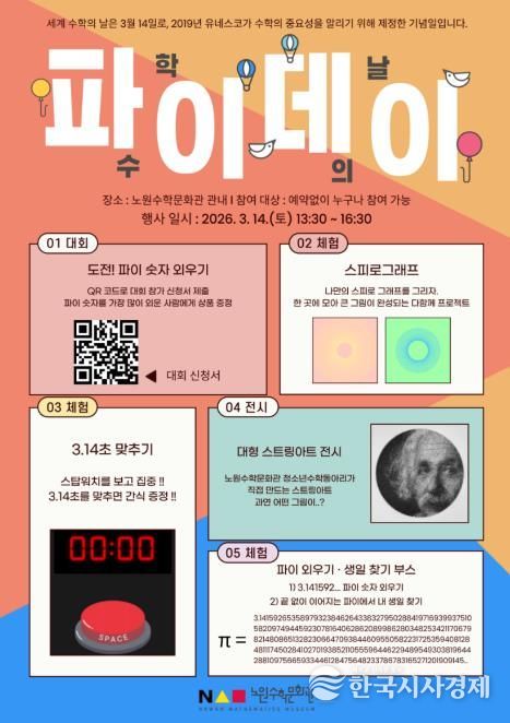 한국시사경제 이정이 기자 | 서울 노원구는 세계 수학의 날을 맞아 오는 14일 노원수학문화관에서 '2026 파이데이' 행사를 개최한다고 밝혔다.