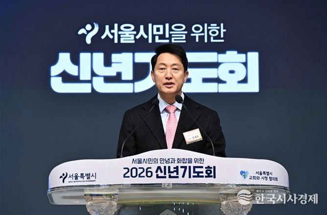 한국시사경제 오영주 기자 | 오세훈 서울시장은 9일 오전 7시 20분, 신길교회(영등포구 영등포로67가길 9)에서 서울특별시교회와시청협의회 주최로 열린 ‘2026 신년기도회’에 참석해 서울 시민의 안녕과 화합을 위해 기도했다.