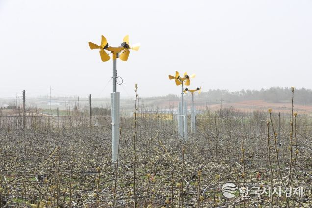 방상팬은 철제 파이프 위에 설치된 전동 모터에 날개를 부착, 온도가 내려갈 때 모터를 가동해 송풍하는 장치이다. 미세살수장치는 기온이 영하일 때 스프링클러로 물을 뿌려 얼음으로 변할 때 나오는 잠열을 이용해 꽃눈과 꽃을 보호할 수 있다. 통로형 온풍 시설은 과수원 중앙에 온풍기를 설치하고 따뜻한 바람을 내보내는 통로를 나무가 심어진 줄에 배치, 과수원 내부 온도를 2∼3도 올리는 장치이다.