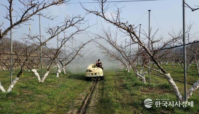 한국시사경제 오영주 기자 | 옥천군농업기술센터는 복숭아 개화기를 앞두고 월동 병해충 적기 방제를 위한 현장 기술지도를 강화하고 있다.
