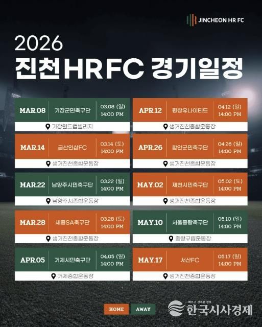 구단은 이번 2026 시즌 K4리그에서 총 24경기를 소화할 예정이며, 이 중 절반인 12경기가 진천군 생거진천 종합운동장에서 펼쳐진다.