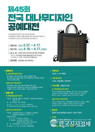 한국시사경제 이정이 기자 | 대나무의 고장 담양군이 유구한 역사를 자랑하는 국내 유일의 대나무공예 공모전인 ‘제45회 전국대나무디자인공예대전’을 개최한다.