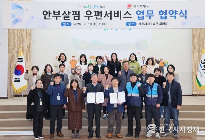 한국시사경제 문화팀 | 제주시는 3월 10일 시청 1별관 회의실에서 제주우체국(국장 오달규)과 ‘안부살핌 우편서비스’ 업무 협약을 체결했다.