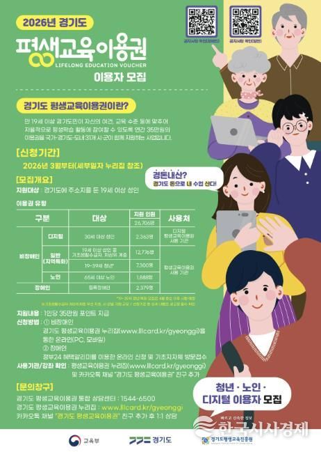 한편, 청년(19세~39세) 평생교육이용권은 4월 중 별도로 모집할 예정이며, 자세한 일정은 추후 안내할 예정이다.