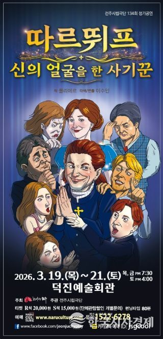 한국시사경제 윤경수 기자 | 전주시립극단(예술감독 겸 연출 이수인)은 오는 19일부터 21일까지 덕진예술회관에서 제134회 정기공연인 ‘따르뛰프’를 선보인다.