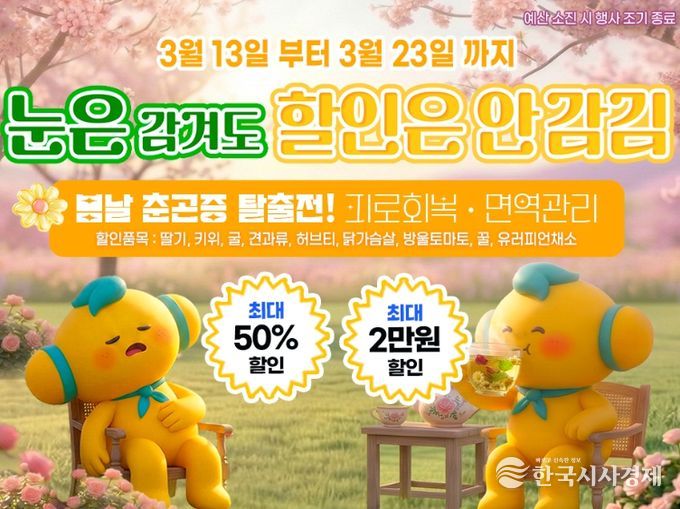 한국시사경제 전남취재본부 | 고흥군이 운영하는 온라인 농수축특산물 쇼핑몰 고흥몰이 오는 3월 13일부터 23일까지 봄철 건강관리를 위한 특별 기획전 ‘눈은 감겨도 할인은 안 감김’을 진행한다.