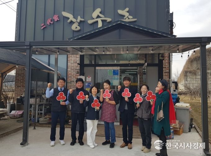 한국시사경제 세종취재분부 | 세종특별자치시 장군면지역사회보장협의체(공공위원장 이부호·민간위원장 김학수)가 11일 세종시사회복지공동모금회와 함께 착한가게 현판식을 진행했다.