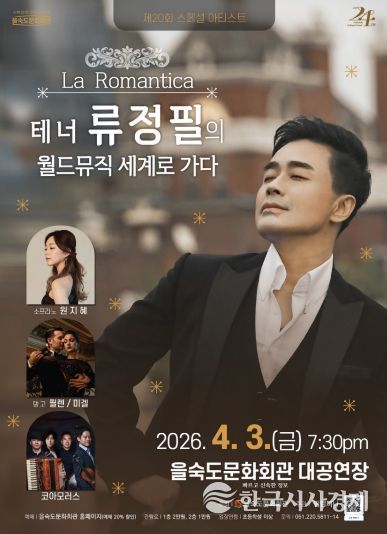 한국시사경제 오영주 기자 | 사하구 을숙도문화회관은 오는 4월 3일 오후 7시 30분 대공연장에서 제20회 스페셜 아티스트 'La Romantica - 테너 류정필의 월드뮤직 세계로 가다' 공연을 개최한다.