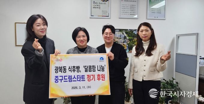 한국시사경제 김숙영 기자 | 부산 중구는 지난 11일, 광복동 디저트 맛집‘식후빵’과 함께 드림스타트 아동들을 위한‘달콤한 나눔’정기후원 전달식을 진행했다.