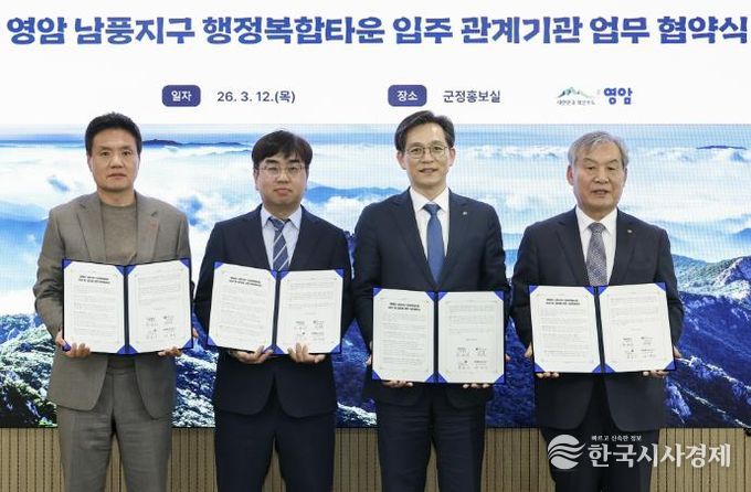 12일 영암군은 군청에서 서부지방산림청 영암국유림관리소, 국민건강보험공단 영암지사, NS종합건설과 ‘남풍지구 행정복합타운 입주 업무협약’을 체결했다.