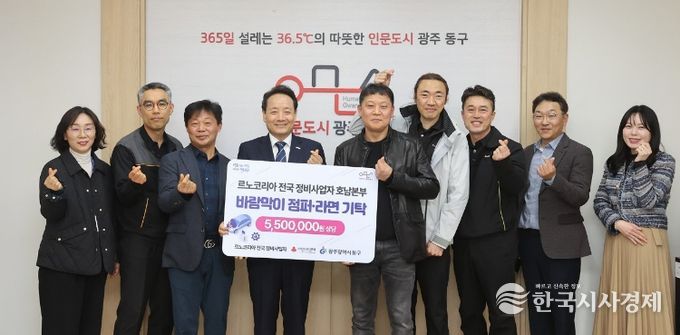 동구 관계자는 “인문도시는 사람을 향한 따뜻한 마음에서 시작된다고 생각한다”며 “어려운 이웃을 위해 나눔을 실천해 주신 르노코리아 전국 정비사업자 호남본부 관계자들께 깊이 감사드리며, 앞으로도 사람 중심의 인문도시 가치 확산과 기본복지가이드라인을 기반으로 한 맞춤형 복지 지원을 지속적으로 추진해 나가겠다”고 말했다.